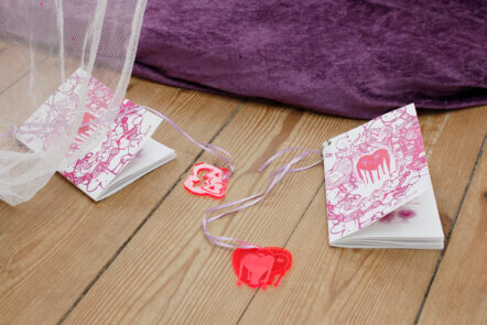 til at hele knuste hjerter lavet af arzu i samarbejde med Lærke Ziggy zines, bamser, prinsesse net, laser cut illustrationer, opskrift til at hele dit knuste hjerte.