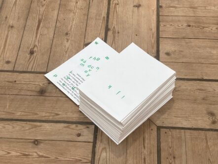 Projektor, sort papir, kopipapir, kabler, håndskåret glas, to vintage samler