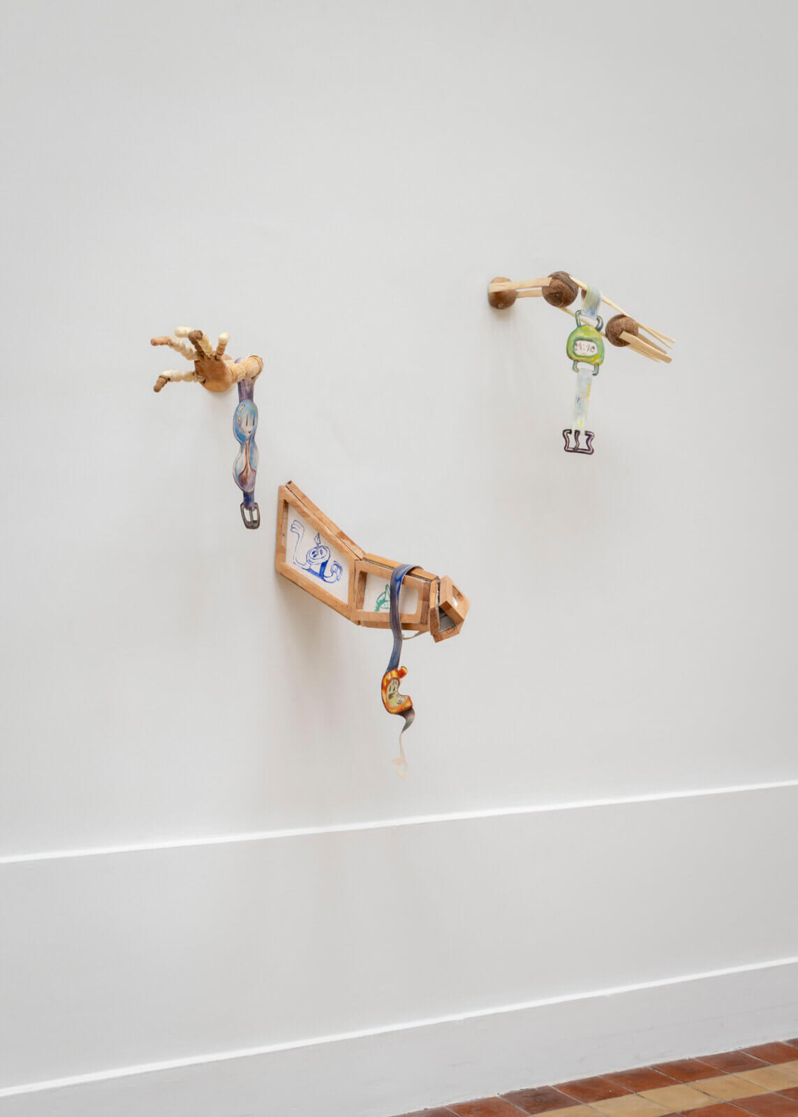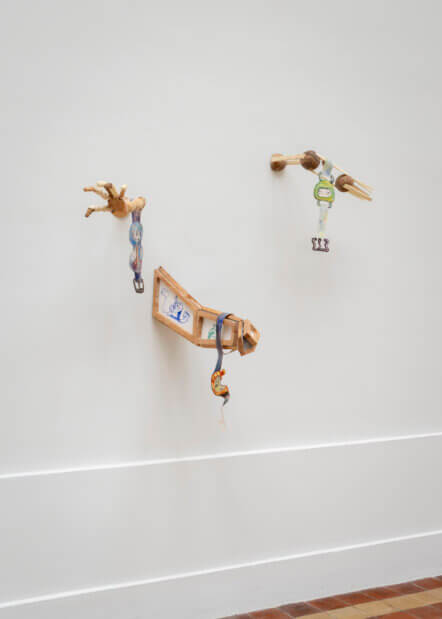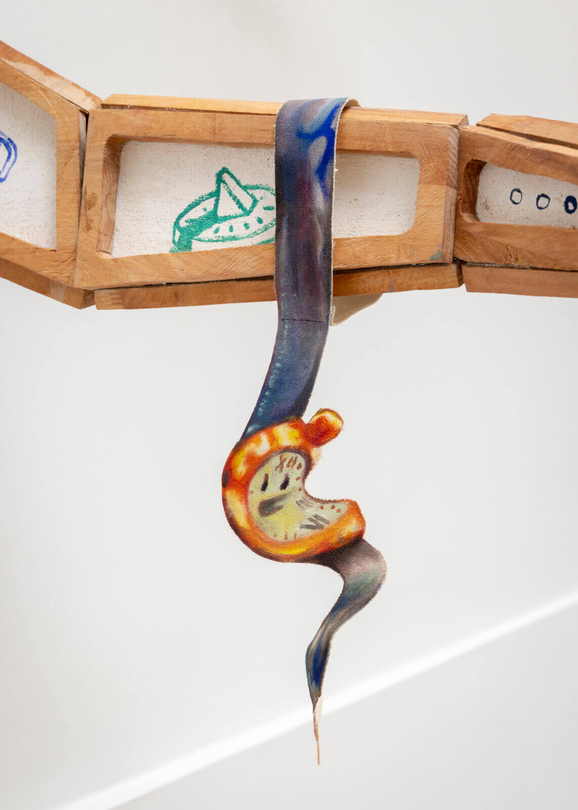 Hazel, oak, walnut, pine, robinia, canvas, oil paint, hardware
